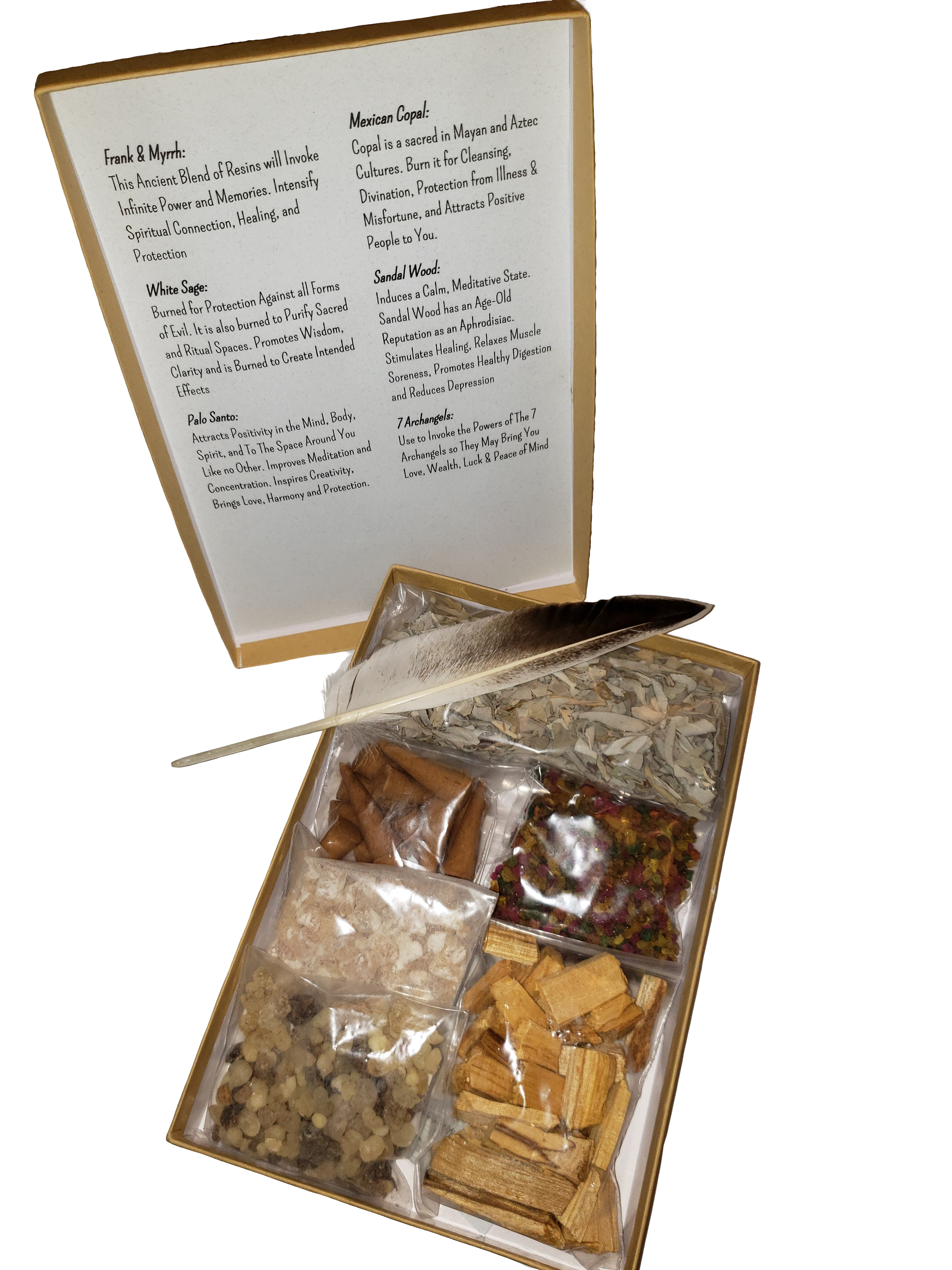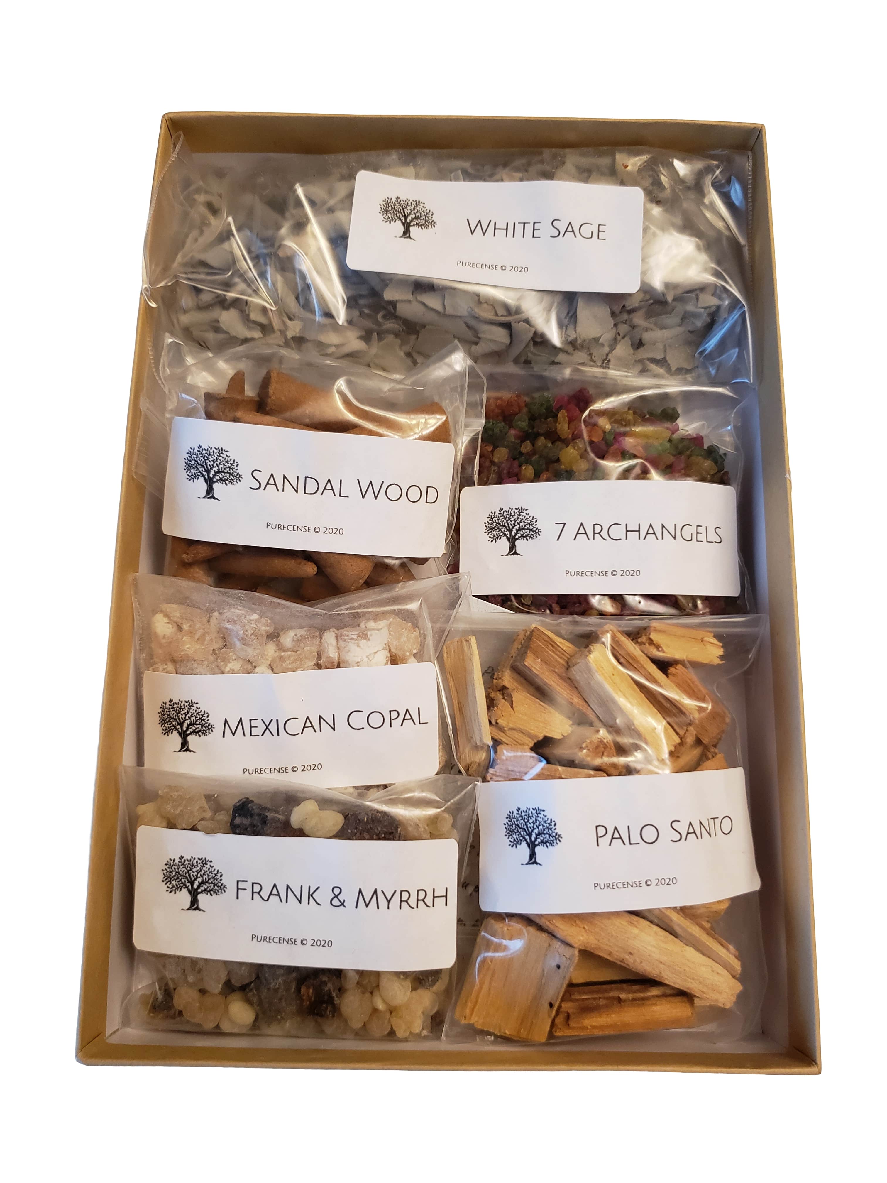 - High Quality Resin Incense Variety Sampler of Popular Scents: 1 oz. Bags of Frank & Myrrh, White Sage, Palo Santo, Sandal Wood, Mexican Copal, 7 Archangels